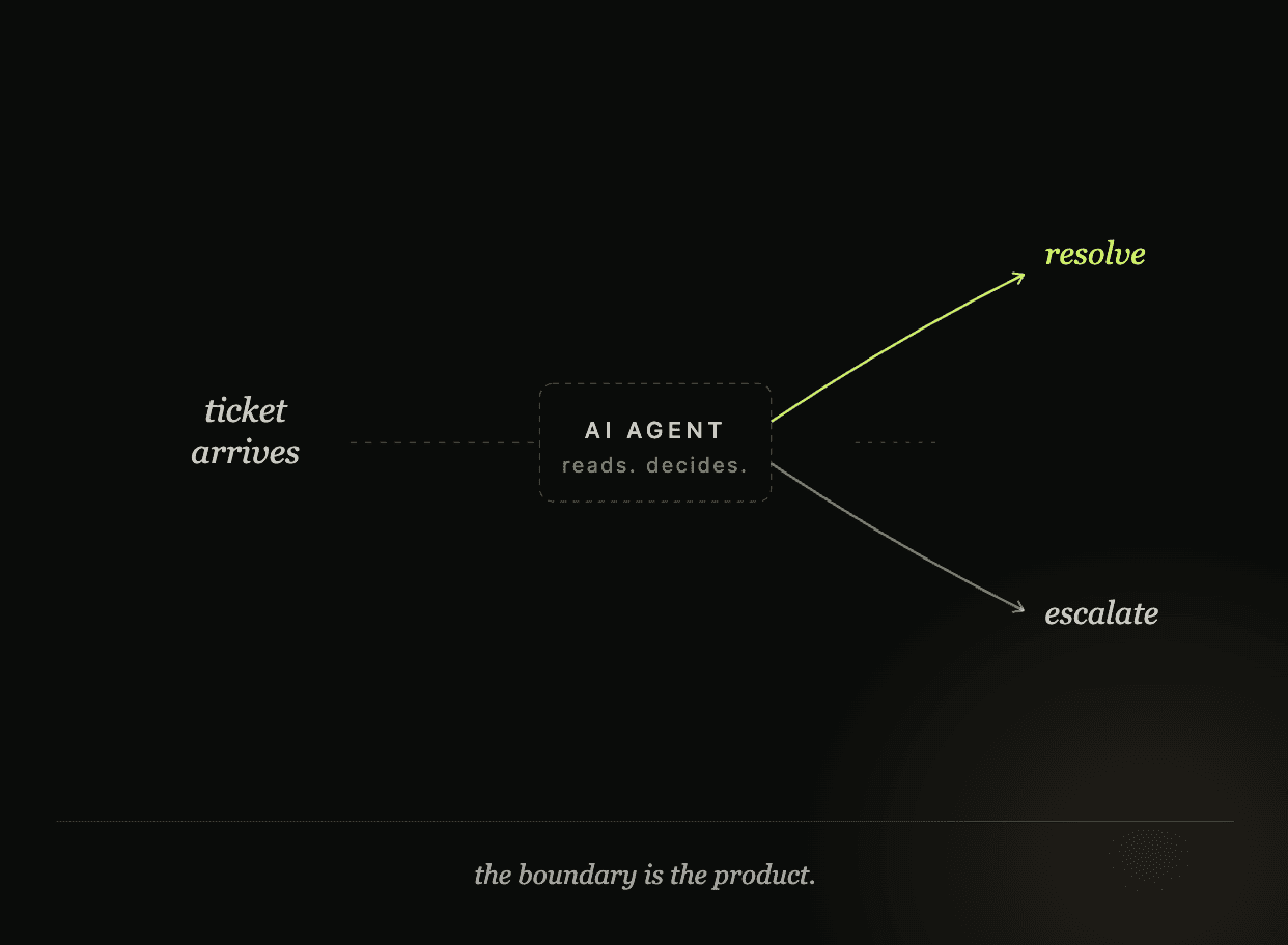 Knowledge Atlas captures what happens after escalation. When a human agent resolves a category-specific ticket, the resolution pattern feeds back into the knowledge tree with appropriate escalation tags. The boundary becomes more precise over time, not blurred.