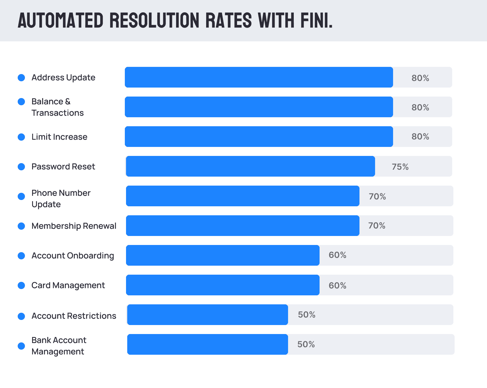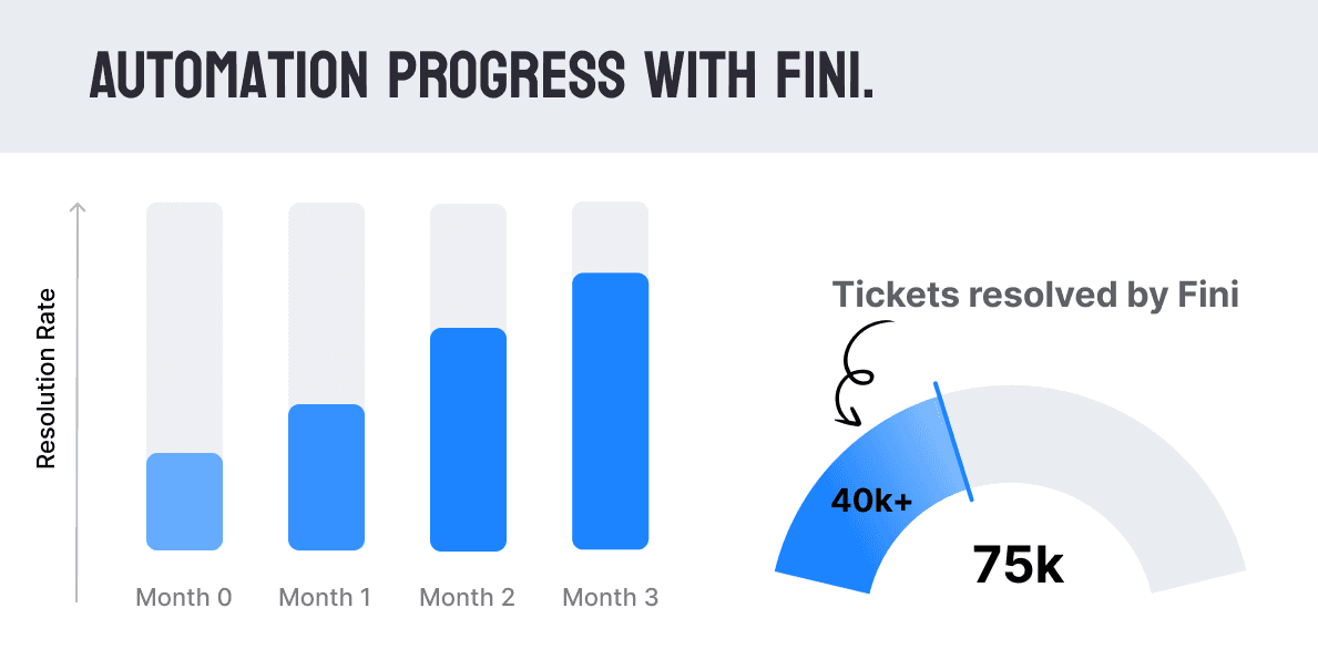 Around 47% automation on tickets FINI is allowed to handle, or 40,000+ tickets/month resolved by the AI agent